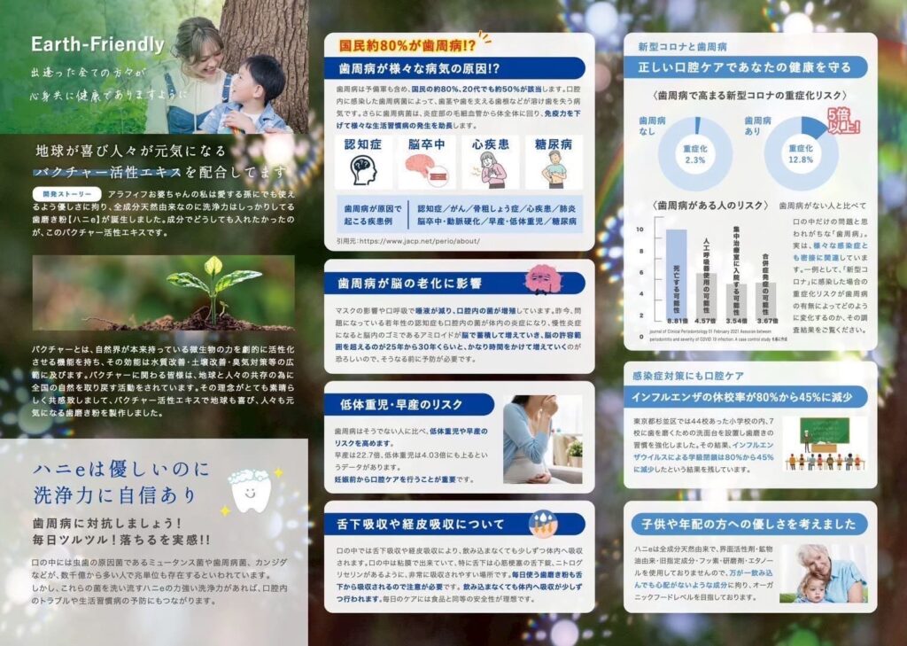 人だけではなく地球にもやさしい、“愛がつまった歯磨き粉”として、健康意識の高い方を中心に選ばれています。