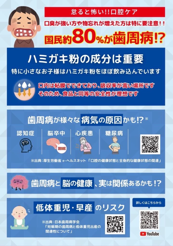 また、歯周病は「脳の健康」にも影響があるかもしれないと言われており、口腔ケアの重要性が年々高まっています。